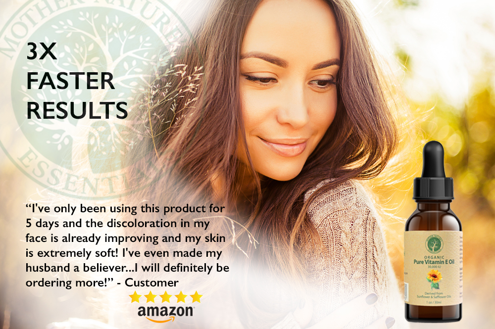 Vitamin E Oil Pure Organic d-Alpha tocopherol 60,000 IU – 2 Ounce works great. I like the light weight feel of the oil, mild earthy fragrance, and clear color. It is easy to use, and I am very pleased that it comes with 2 bottles of oil.