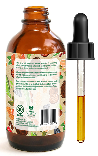 Mother Nature’s Vitamin E is North American domestic raw material source and production. It is packaged in a certified kosher production facility.